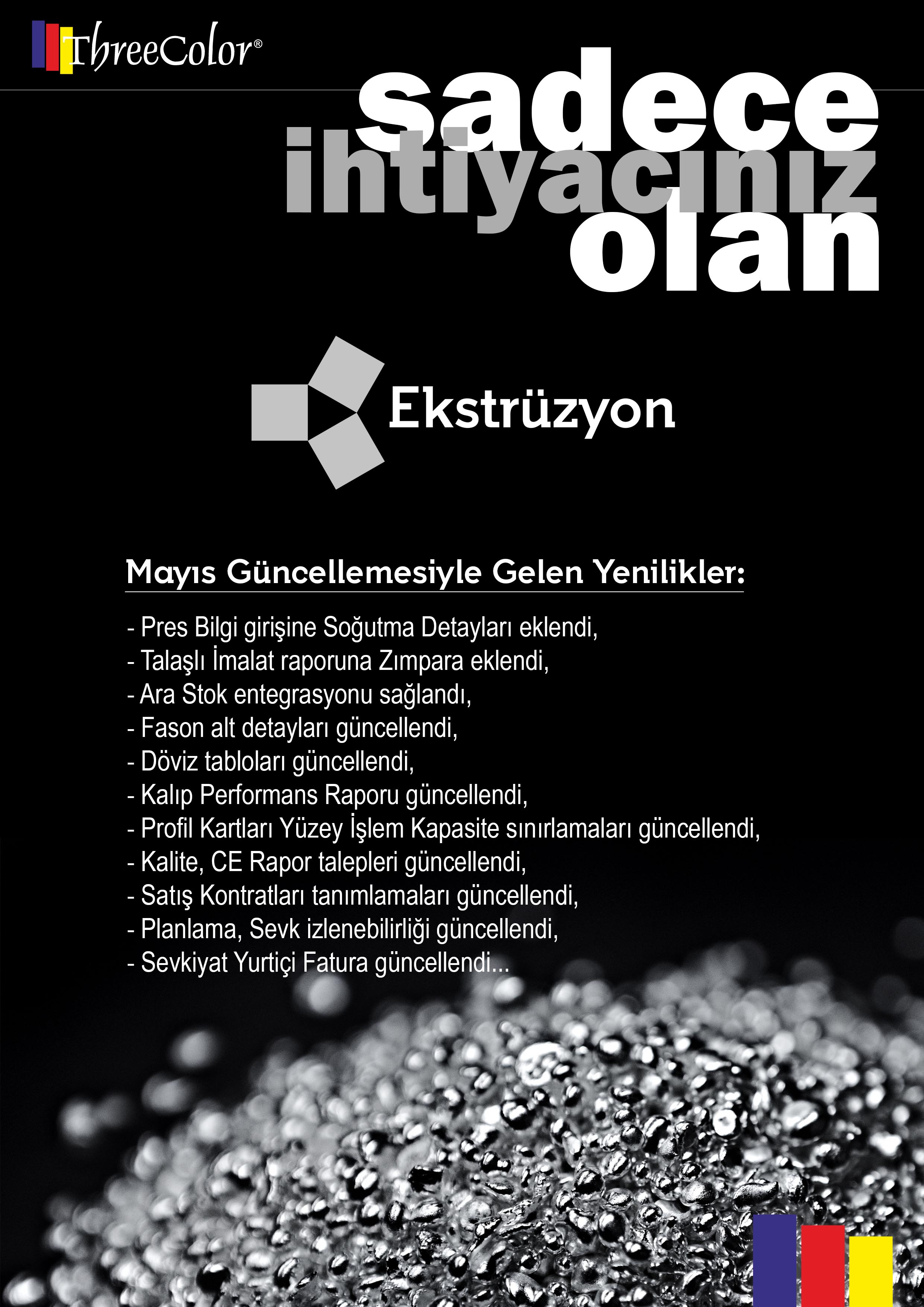 Gelen mayıs güncelemesi ile Ekstrüzyon'daki yenilikleri öğrenmek için linki tıklayarak broşürü indirebilirsiniz.